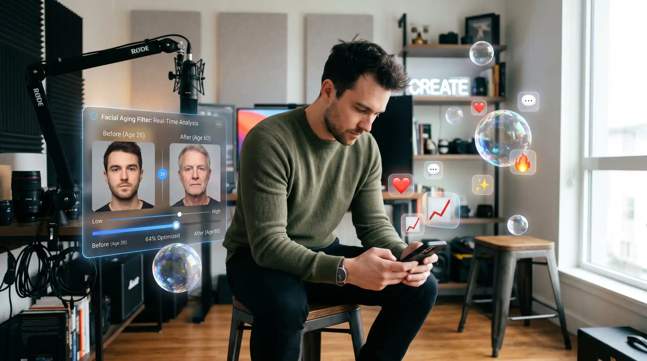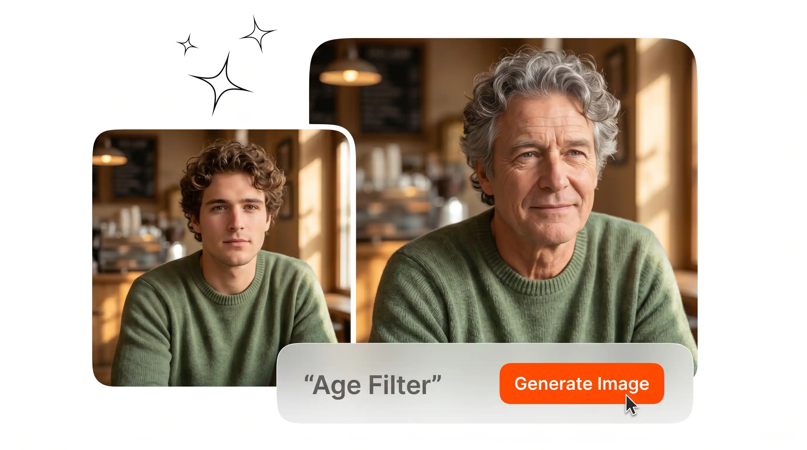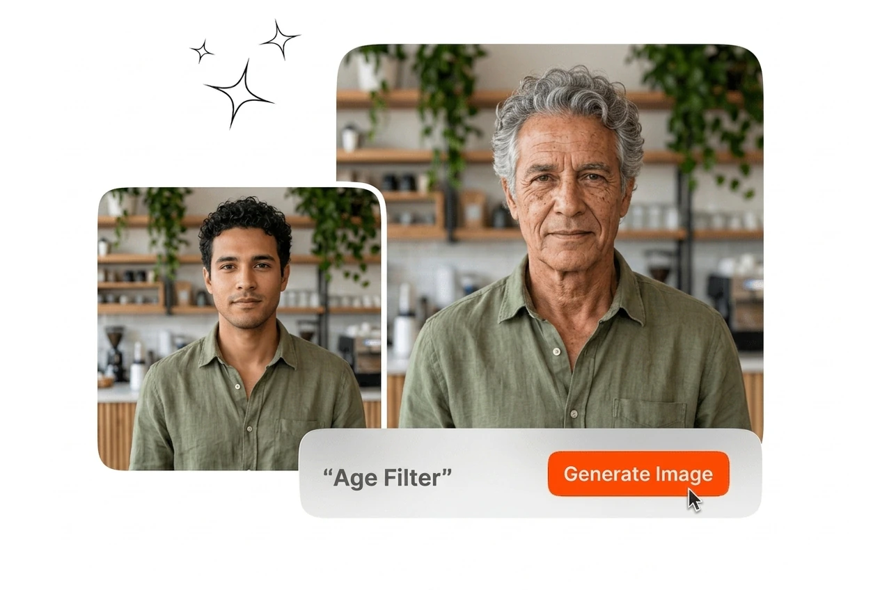 I creator che pubblicano quotidianamente su TikTok o Instagram Reels usano il Filtro età per generare contenuti di invecchiamento del volto prima e dopo da condividere. Carica una foto, seleziona la fascia d'età e l'output è pronto per il post in meno di un minuto. Nessun software di grafica richiesto.