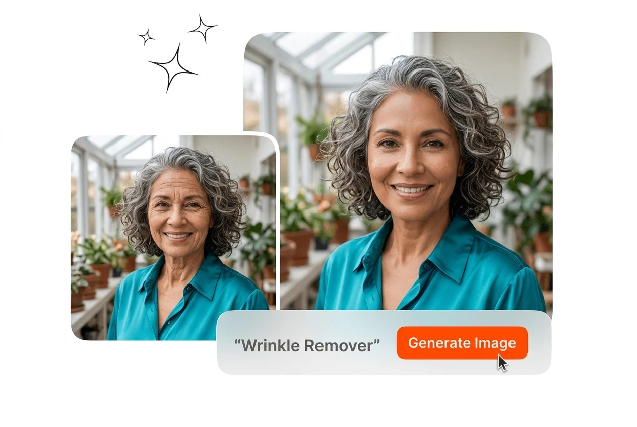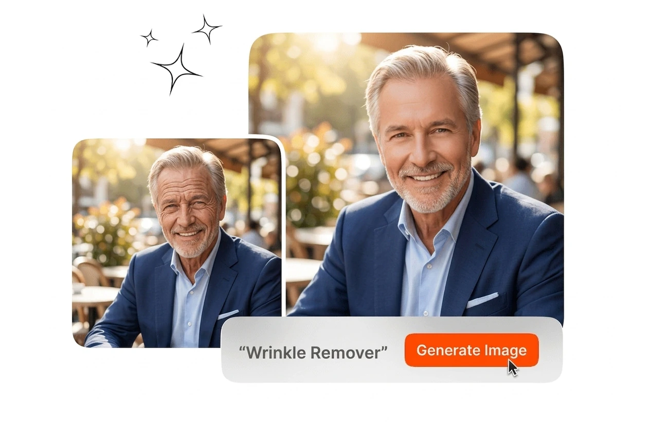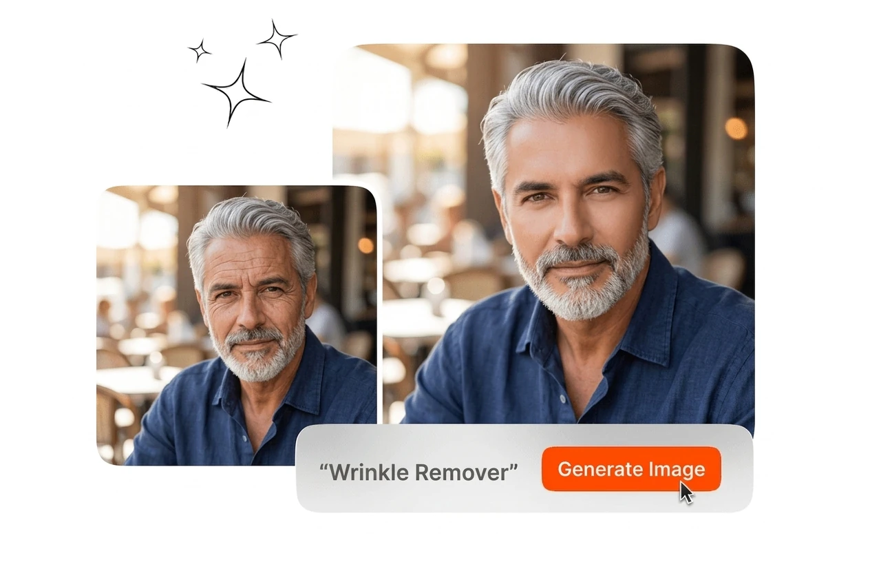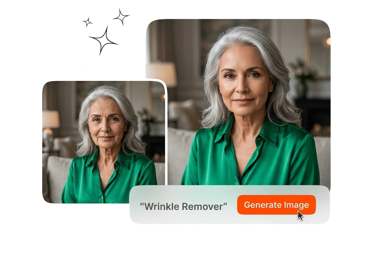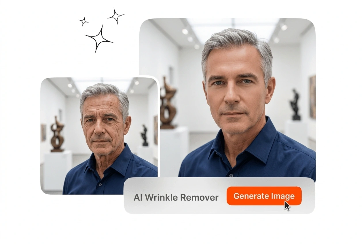 You process dozens of employee portraits per session. The AI Wrinkle Remover handles the initial retouching pass automatically. This face Wrinkle Remover ensures consistent skin smoothing across the entire company gallery without manual brush work.
